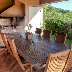 L’extérieur de cette belle maison de vacances pour 8 personnes s’ouvre sur un terrain à usage privé de 1500 m² avec plantes et arbres, sur une piscine de 8 m et sur un terrain de pétanque. Des meubles de jardin et un espace barbecue sont aussi disponibles.