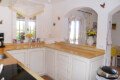 Une cuisine ouverte sur le séjour avec 4 plaques vitrocéramiques, un four micro-ondes, un lave-vaisselle et une table pour les repas.